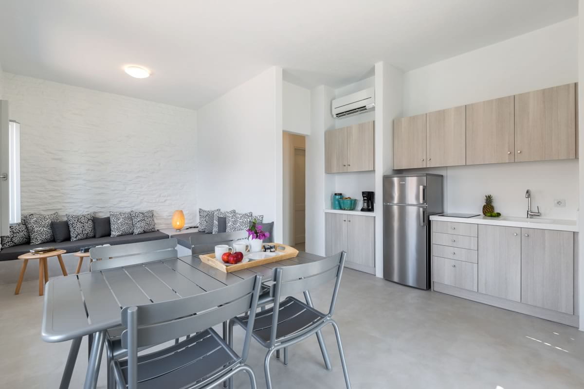 Παροχές studio: Τηλεόραση, κλιματισμός, μικρή κουζίνα, ψυγείο, πλυντήριο ρούχων, καφετιέρα, τοστιέρα, κουζινικά σκεύη, καλωσόρισμα με είδη πρωινού, πετσέτες/σεντόνια, έπιπλα εξωτερικού χώρου, WiFi.
